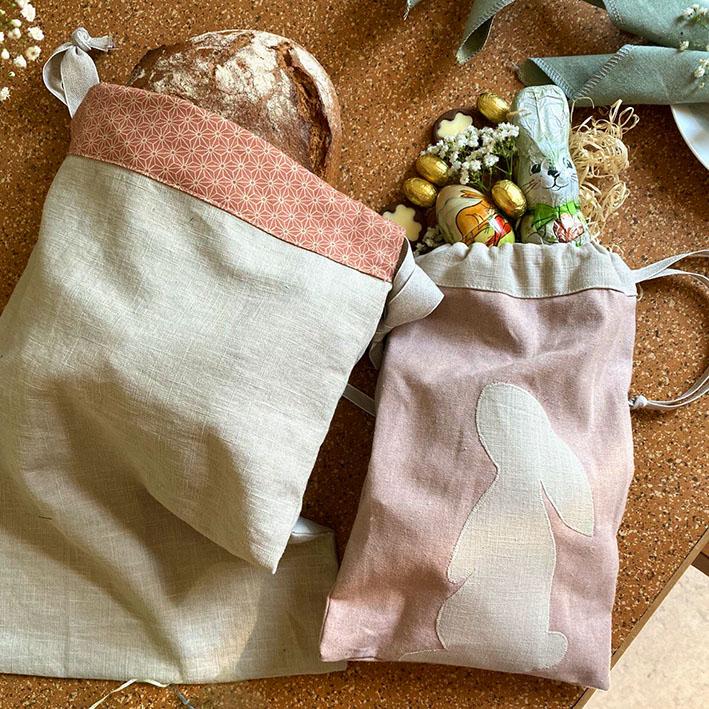 In diesem LEINEN-Säckchen bleibt Dein Brot lange frisch und Du kannst es immer wieder verwenden! Genauso praktisch sind die kleinen Säckchen, zum Beispiel für Ostergeschenke! Sie sind ganz einfach zu nähen, HIER findest du die Nähanleitung und die Appliziervorlage.